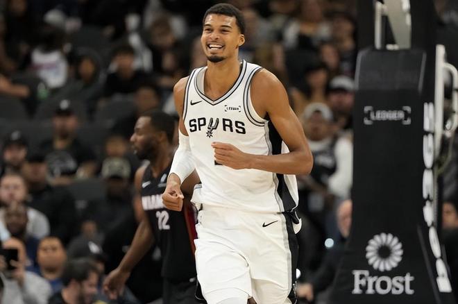 此役马刺赢球头号功臣必然是年轻的文班亚马,第四节超神发挥力挽狂澜带队逆转,攻防两端打爆武切维奇,最后时刻两记三分尽显超巨本本色,此役文班亚马用无解的个人发挥创造了一项NBA神级纪录,根据NBA官方统计显示:文班亚马是NBA历史上首位单场至少至少35分10板5助5帽且投进5+三分的球员。本赛季至今文班亚马场均得到25.7分12.8篮板3.4助攻1.2抢断3.9盖帽的超级数据,投篮命中率50%三分命中率32%,罚球命中率84%,当一名身高超过2米2的球员能用后卫的方式打球时,作为他的对手是绝望的。在他的带领下马刺战绩来到了8胜2负,仅次于雷霆的10胜1负高居西部第二。本场比赛结束马刺进攻效率联盟第七,防守效率联盟第五,是一支实力均衡的顶级强队,只要不出现重大伤病他们甚至有机会挑战雷霆!